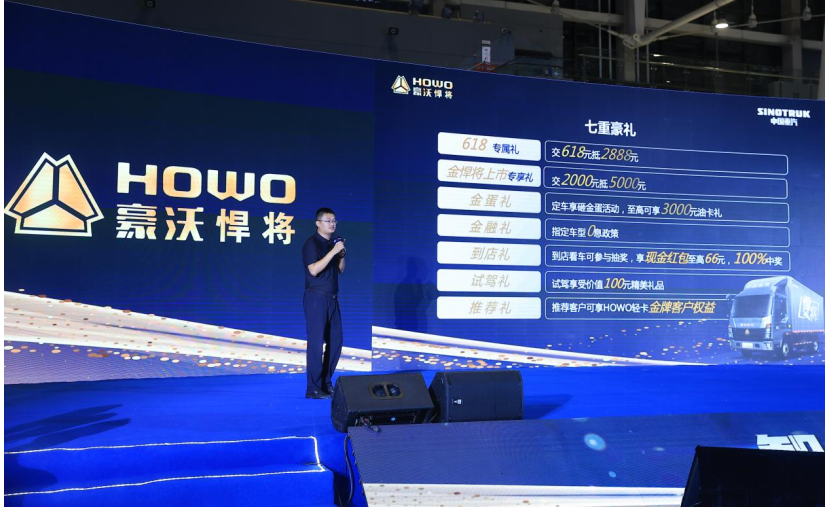 ▲中國重汽集團濟南輕卡銷售部總經理助理王冠煒公布優惠政策