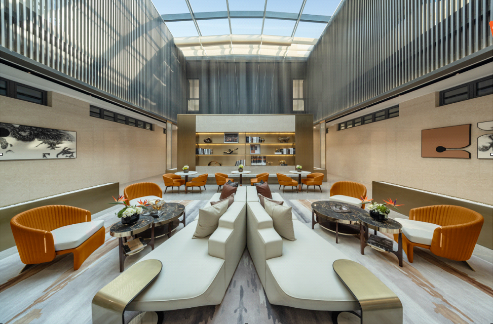 長達40余米高約8.5米的社區(qū)大門,放眼望去蔚為壯觀,大門前水景點綴,層層疊水和雕塑,加上濃郁綠植,將回家的儀式感拉滿。 以鋁板搭配玻璃幕墻打造的酒店式大堂,兼具功能與審美,同樣也是一個社區(qū)會客廳,內(nèi)部由書吧閱讀區(qū)、沙發(fā)休憩區(qū)、快遞收發(fā)區(qū)和接待區(qū)4大共享空間組成。業(yè)主可以于此或閱讀休閑或接待朋友、與鄰居洽談……