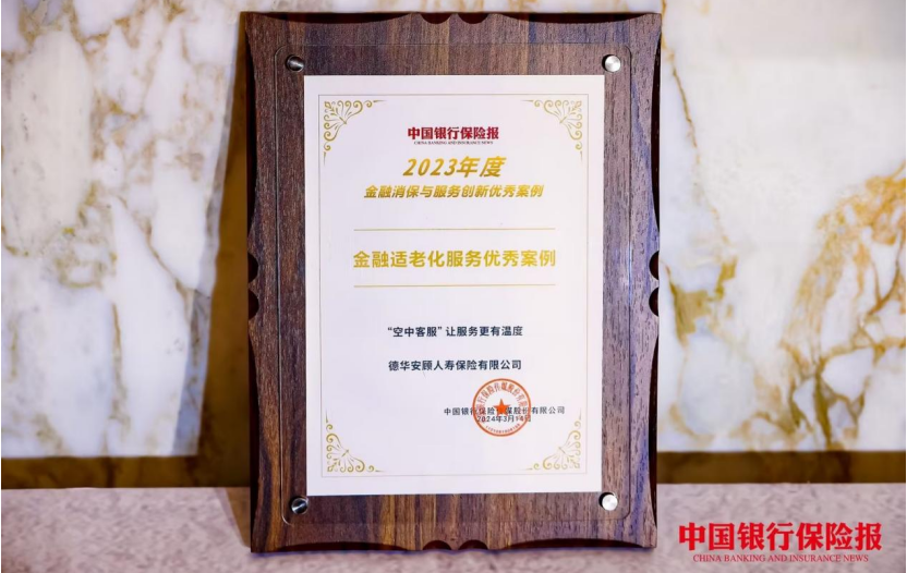 近日,由《中國銀行保險報》主辦的“2024金融消保與服務創新”主題活動在北京舉辦。會議圍繞“ 做好大消保,共建新服務 ”主題,與會嘉賓就當前銀行業保險業服務創新經驗和消費者權益保護工作質效提升建言獻策。同時,會上同時公布了2023年度金融消保與服務創新優秀案例名單。德華安顧人壽“空中客服”系統憑借適老服務及創新舉措獲評“2023年度金融消保與服務創新案例”-金融適老化服務優秀案例。