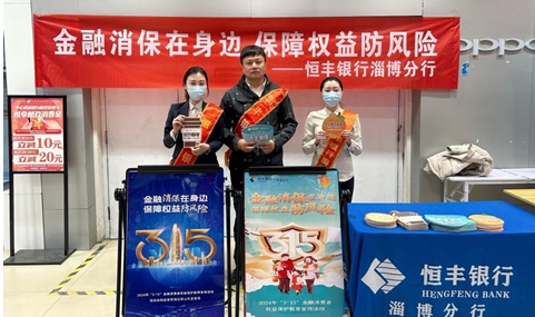 近日,恒豐銀行淄博分行以提升消費(fèi)者金融素養(yǎng)和金融安全意識、增強(qiáng)消費(fèi)者依法維權(quán)意識為目的,通過開展各類“3•15”金融知識宣教活動,積極宣導(dǎo)金融政策,提示金融風(fēng)險,倡導(dǎo)理性投資理念,扎實(shí)推進(jìn)行業(yè)誠信文化建設(shè),切實(shí)增強(qiáng)人民群眾金融服務(wù)的便利性、可得性和獲得感。 聯(lián)合監(jiān)管部門開展集中宣傳,擴(kuò)大金融知識宣傳覆蓋面 淄博分行加強(qiáng)與監(jiān)管部門的對接,聯(lián)合監(jiān)管部門及同業(yè)金融機(jī)構(gòu)力量,切實(shí)提高宣傳效果。活動期間,圍繞“金融消保在身邊 保障權(quán)益防風(fēng)險”宣傳主題,先后前往淄博市購物商場、化工企業(yè)等地開展集中宣傳活動,進(jìn)行多維度金融知識宣教,切實(shí)推進(jìn)了社會公眾與銀行機(jī)構(gòu)的良性互動。
