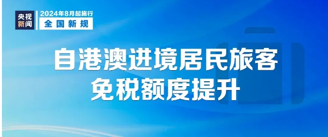 8月1日起,自香港、澳門進境居民旅客攜帶行李物品免稅額度提高至12000元。