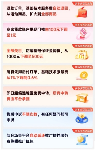 ▲最近,拼多多“百億減免”系列舉措相繼落地,全方位促進商家提質增效。