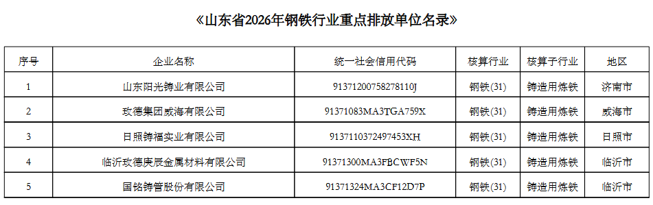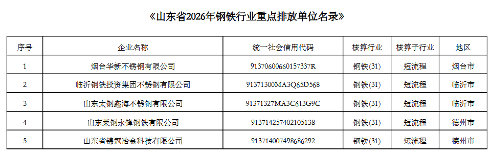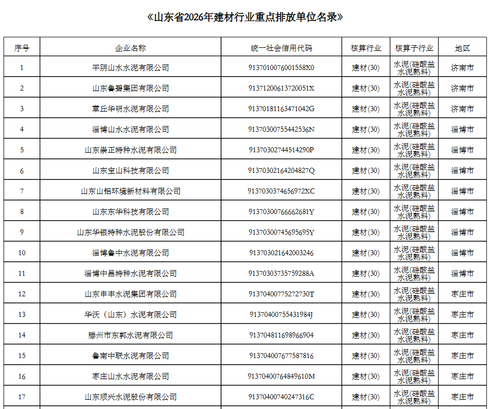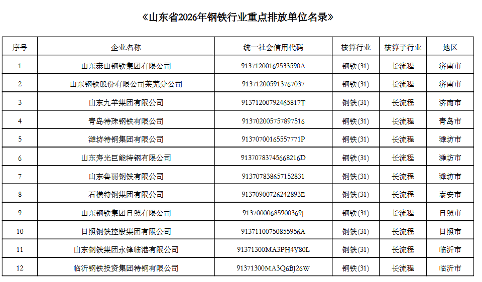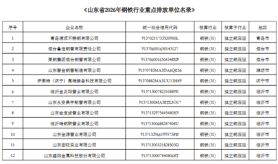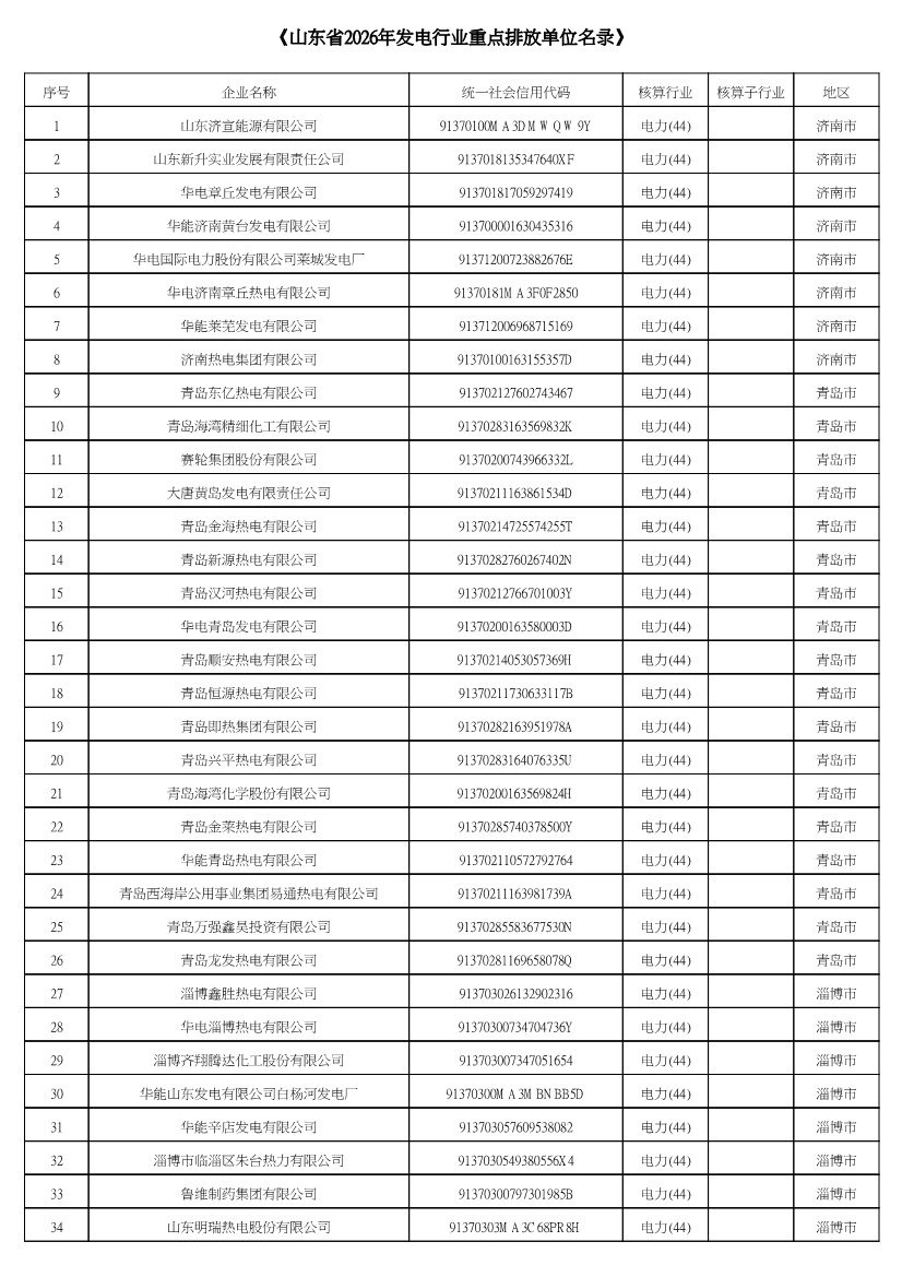 10月29日,山東省生態環境廳公布了全國碳市場2026年度發電、鋼鐵、水泥、鋁冶煉行業重點排放單位名錄。