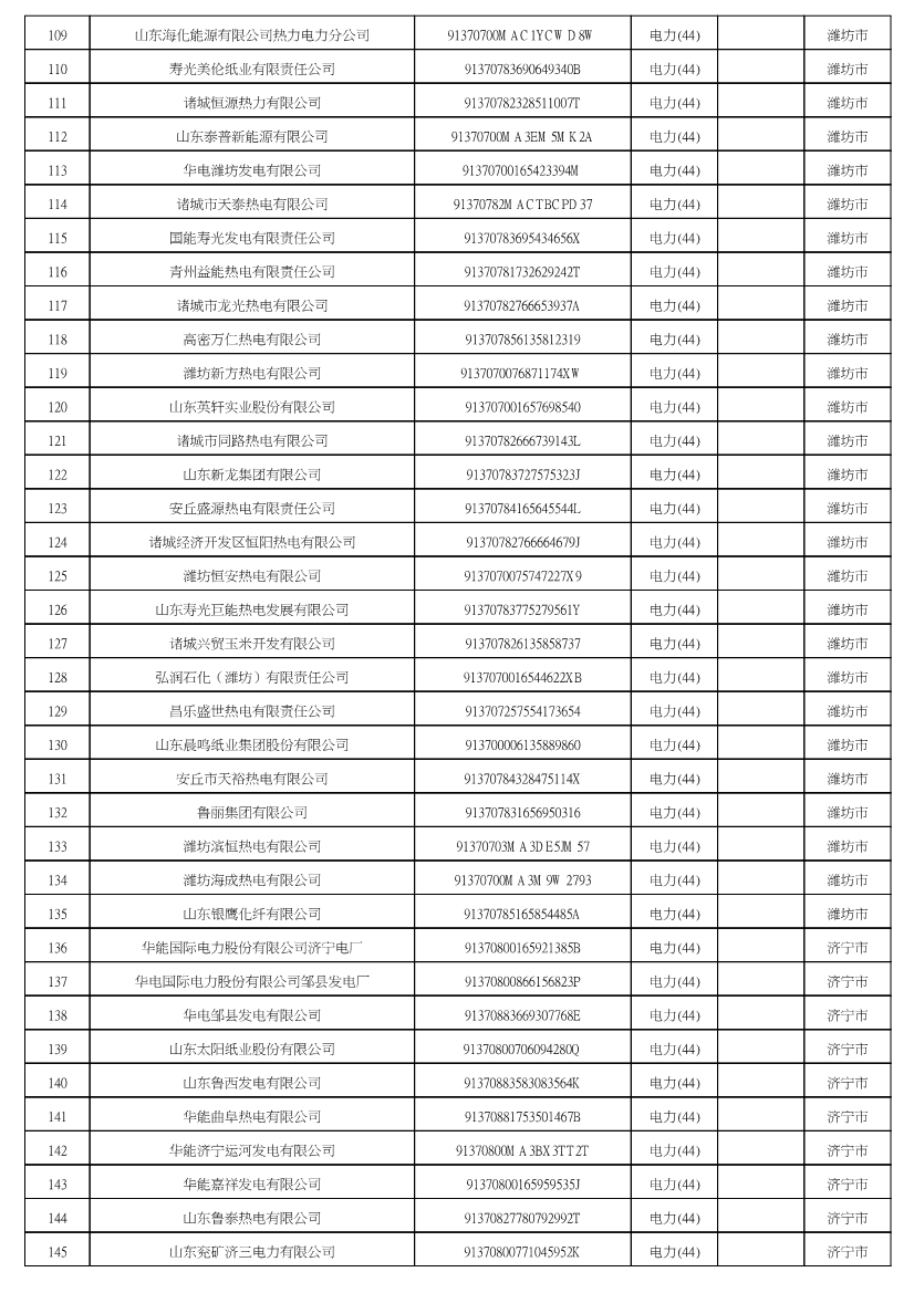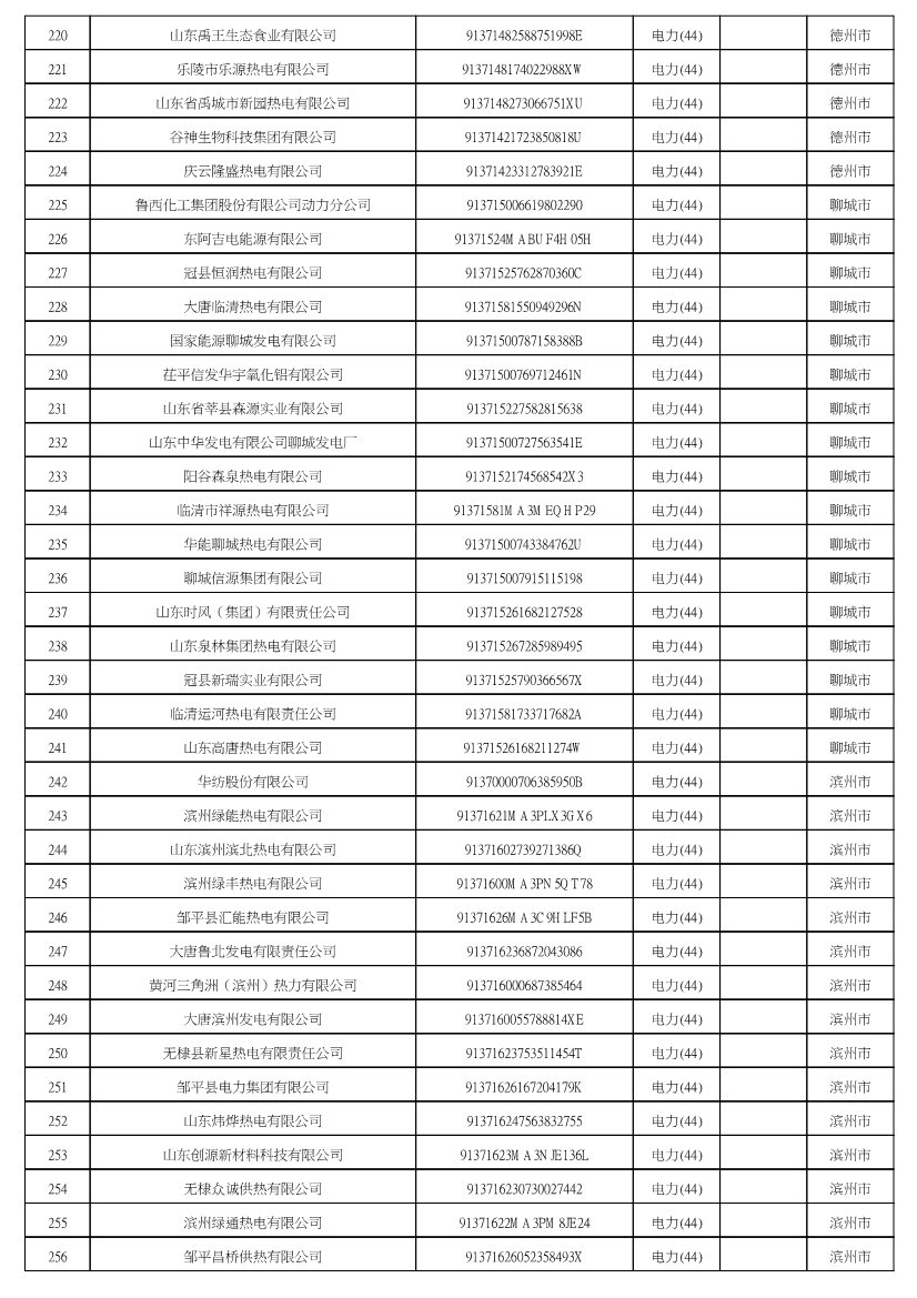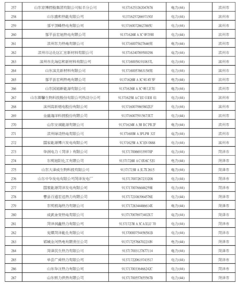 其中,發電企業287家,包括濟南熱電集團有限公司、華電章丘發電有限公司、華能青島熱電有限公司等;