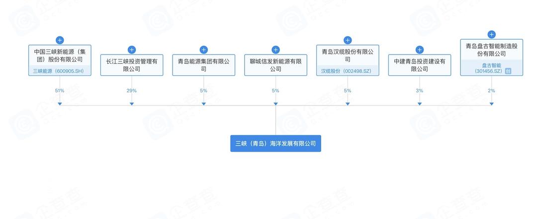 9月25日,三峽能源與三峽集團全資子公司長江三峽投資管理有限公司、青島市屬國企青島能源集團、聊城信發新能源有限公司等多家機構共同出資成立了三峽(青島)海洋發展有限公司,注冊資本14889萬元,其中,三峽能源為大股東,持股51%。