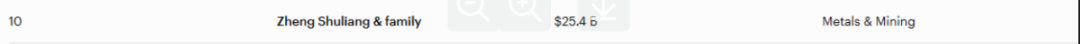 魏橋創業鄭淑良及家族以254億美元財富列第10位,比去年上升7個位次。