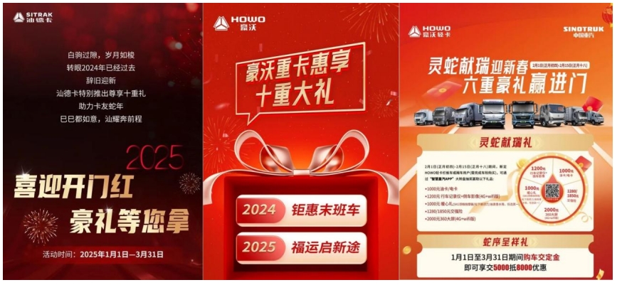 喜迎開門紅 交車不停歇 面對行業“雙降”挑戰,中國重汽以雷霆之勢點燃市場。汕德卡以“十重尊享禮”掀起搶購熱潮,豪沃重卡重磅推出“新春延保禮”、“安心保價禮”等購車特惠,助力客戶開啟財富之路!HOWO輕卡深刻洞察用戶需求,以“六重豪禮”誠意叩響創富之門。這場開年營銷攻堅戰的背后,既是品牌對市場趨勢的敏銳把握,更是企業與用戶之間的雙向奔赴。辭舊迎新之際,中國重汽以新春賀歲系列短劇《最美全家福》為筆,書寫卡友與家人之間的溫情故事,為寒冬中的物流人送上了一份暖意融融的“新春賀禮”。正是這份對產品品質的堅持和以客戶為中心的服務理念,讓中國重汽在市場上贏得了廣泛的認可,從而掀起一波又一波的交付熱潮。