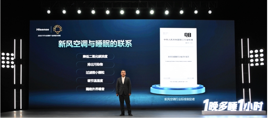 5月12日,在剛剛結(jié)束的“1晚多睡1小時(shí)—海信空調(diào)新風(fēng)生活方式發(fā)布會(huì)”上,海信正式推出新風(fēng)空調(diào)健康睡眠解決方案,并聯(lián)合中國睡眠研究會(huì)、中國家用電器研究院等多家權(quán)威機(jī)構(gòu)正式發(fā)布《新風(fēng)空調(diào)助眠白皮書》。現(xiàn)場多位專家表示,睡眠問題已成為都市人的“奢侈品”,上海交通大學(xué)教授吳吉祥在主題發(fā)言中,從科學(xué)視角闡釋睡眠對CO₂、甲醛、TVOC等環(huán)境質(zhì)量的要求,并指出新風(fēng)系統(tǒng)可有效降低二氧化碳濃度、減少污染物、去除異味,對提升睡眠質(zhì)量具有不可忽視的作用。