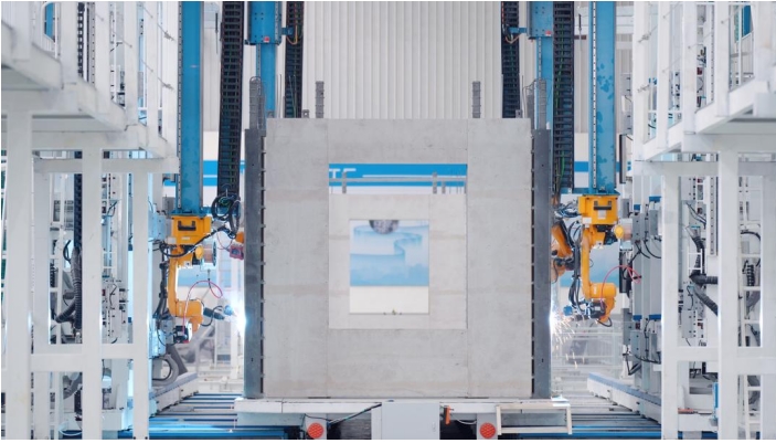 造房工廠里,工人正在給造房機器人發送指令,造房機器人在一條百米長的CMC智能生產線上高效流暢協同作業。僅需12分鐘,即可制造完成一面墻板;僅需2小時,一間模塊化房屋即可制造完成下線。樊則森介紹,CMC智能生產線是目前全國最先進、自動化程度最高的模塊化建筑智能生產線,經院士專家評審達到國際領先水平。相較人工生產線,CMC智能生產線自動化比例提升至80%,制造精度提升至毫米級,生產效率提升4倍以上,良品率提升5倍。