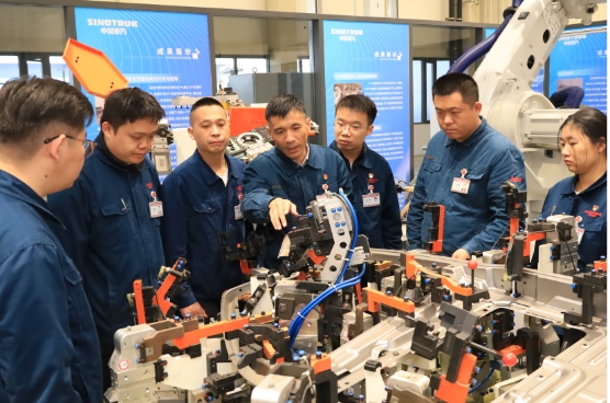 以其名字命名的“刁統武創新工作室”先后斬獲“齊魯大工匠創新工作室”“泰山產業領軍人才創新工作室”“濟南市示范性勞模和工匠創新工作室”“山東省工人先鋒號”等多項榮譽。在刁統武的帶領下,這支囊括焊接、鈑金、機械等多領域人才的團隊已成功解決300余項技術難題,完成T7H中寬體焊裝線改造、T7H/A7平地板高頂駕駛室臥鋪加寬車型焊裝線設備改造、NJ20車型全自動智能化焊裝線建線等重點任務,成為公司發展不可或缺的一支強有力的攻堅突擊團隊。其中《一種用于駕駛室總成焊接的定位裝置》等成果落地應用,為企業創造經濟效益近5000萬元,彰顯了強大的技術攻堅能力。